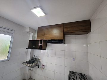 ÒTIMO APARTAMENTO COM DOIS DORMITÓRIOS UM COM VENTILADOR DE TETO E ARMÁRIO, COZINHA COM GABINETE E ARMÁRIO SALA COM VENTILADOR DE TETO